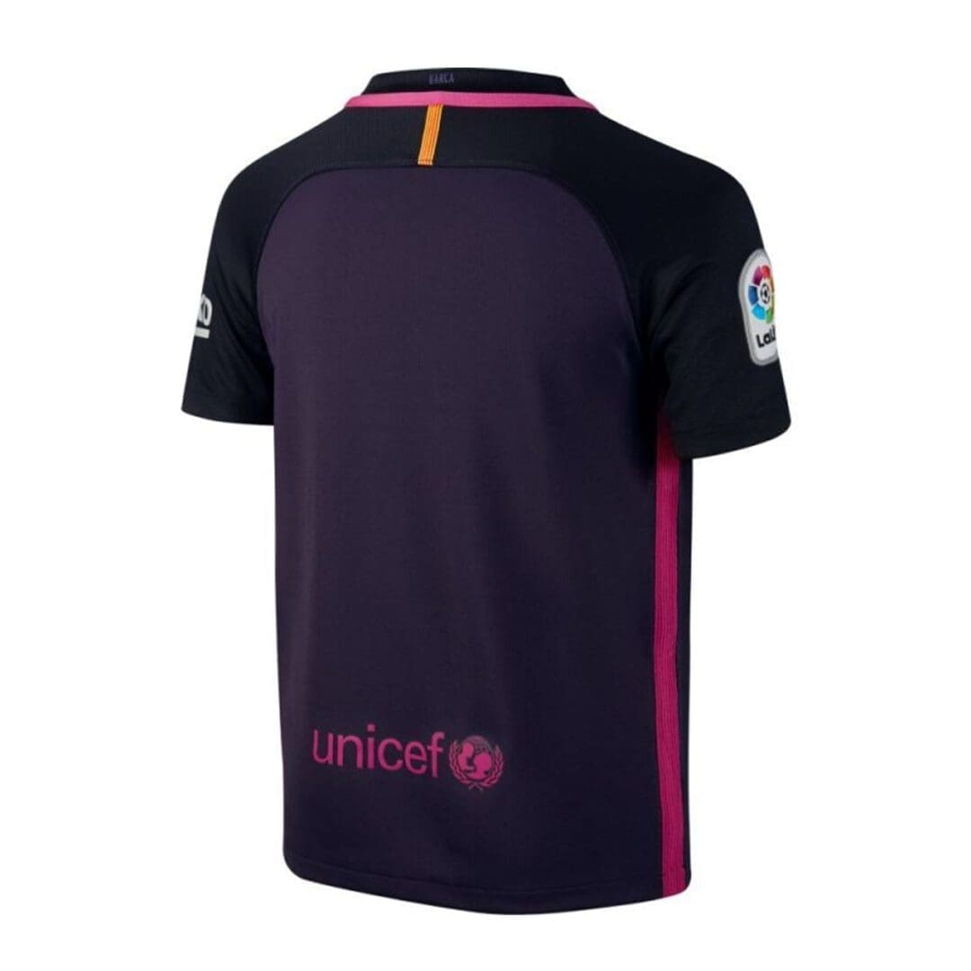 Kids’ FC Barcelona Stadium Top in away colors brings authentic Barça details, such as a woven FC Barcelona crest, together with performance elements like sweat-wicking Dri-FIT technology and game-ready ribbed sleeve cuffs.