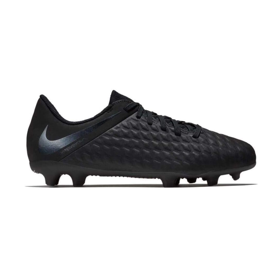 Hypervenom 3 Club (FG) Kids’ Firm-Ground Football Boot is built to attack with an asymmetrical lacing system that expands the strike zone and an allover embossed texture for touch. The integrated tongue stays anchored in place for a consistent, comfortable fit all match long.
