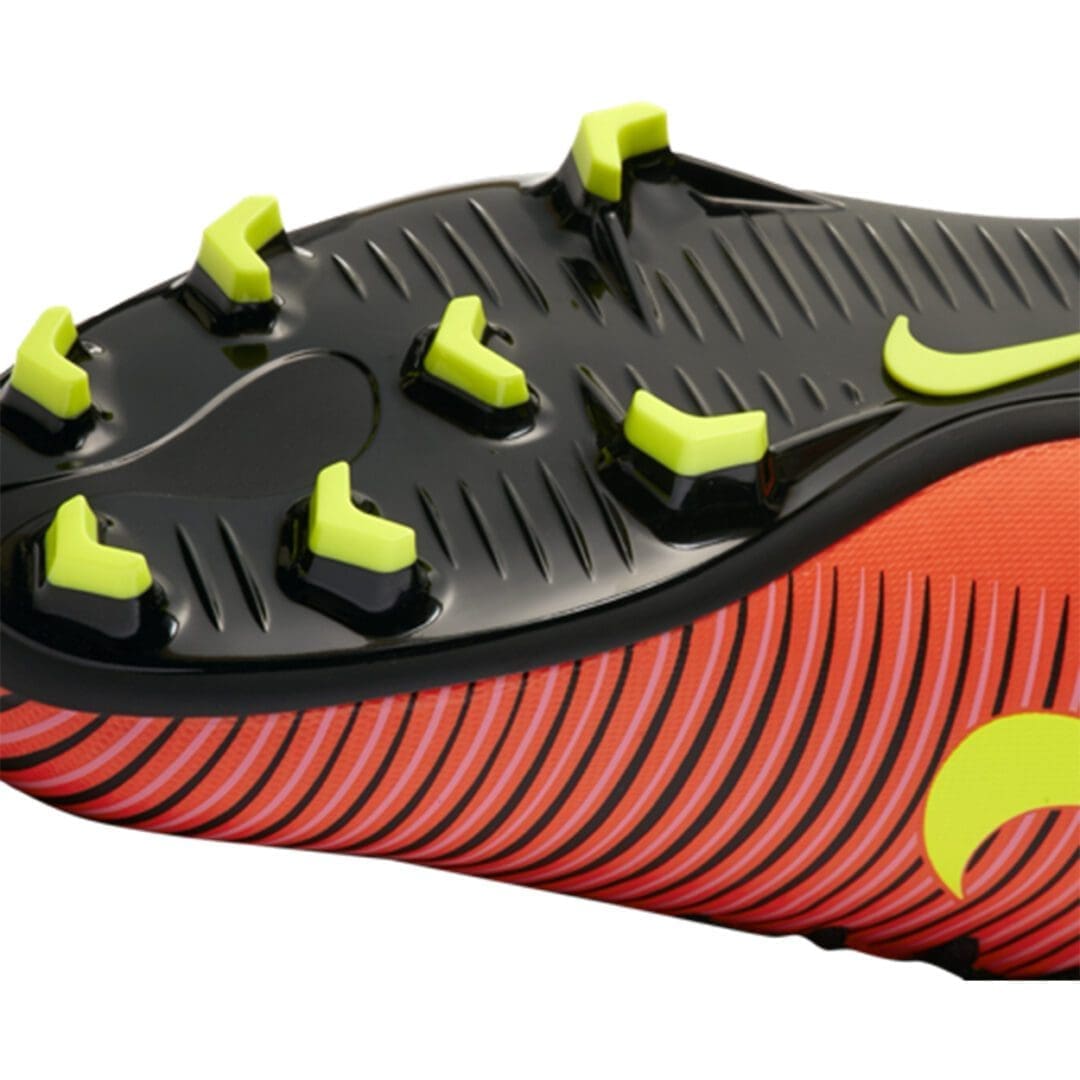 - The lightweight cleat features a synthetic leather upper with raised horizontal ridges to enhance ball control.
