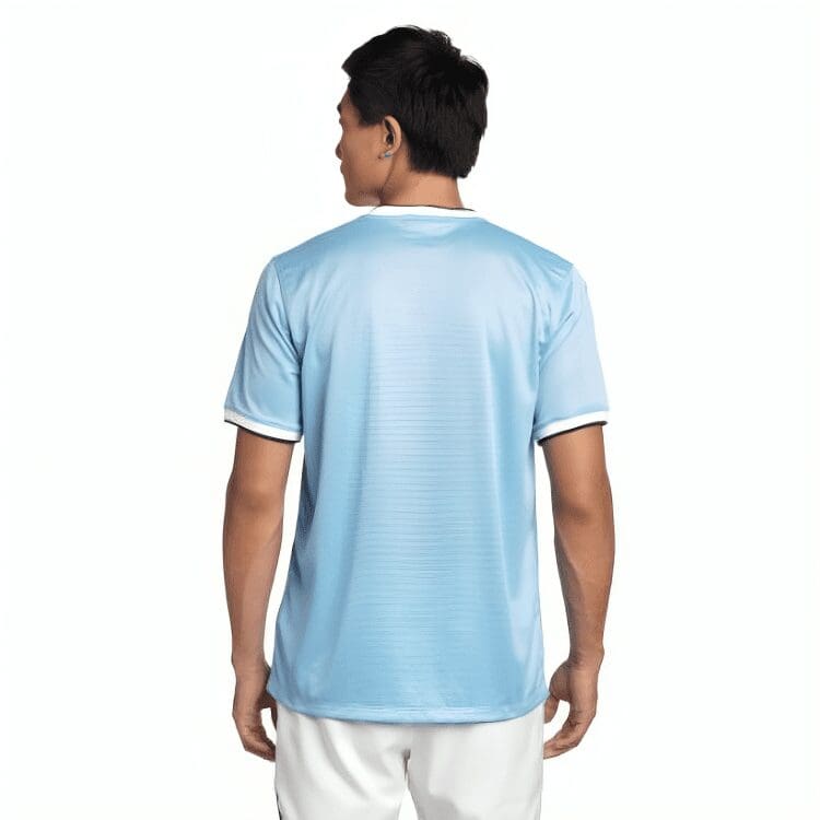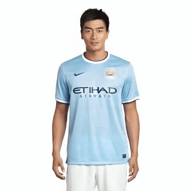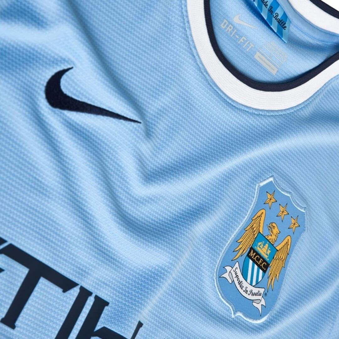 The Manchester City Home Jersey 2013/14 is light blue with white and dark blue tones on the crewneck and ring cuffs. The club’s crest is embroidered on the chest as well as the Nike brand logo. The jersey is available in standard Men’s sizes from Nike.