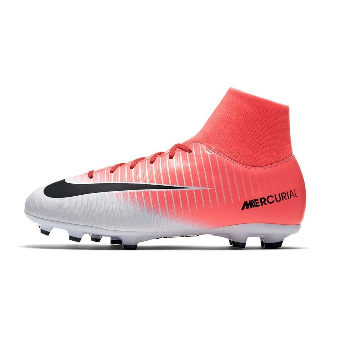 The Nike Jr. Mercurial Victory VI Dynamic Fit Little/Big Kids’ Firm-Ground Soccer Cleat features a minimalist, textured upper and an innovative cleat arrangement for incredible touch and traction on short-grass fields.