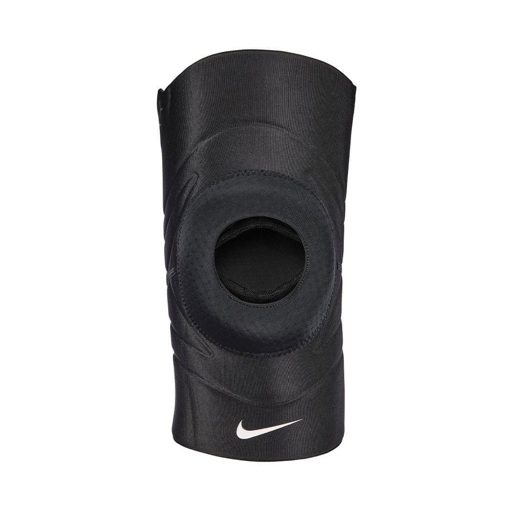 Give your knees a little more support with the Nike Pro Open Patella Knee Sleeve.It slips on easily and helps facilitate blood circulation to the area. Padding and compression around the hole in the knee cap area provides some relief from common knee injuries.