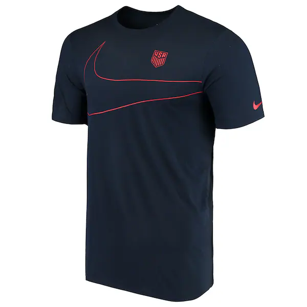 Show your support for Team USA with this stylish and performance-ready Nike pre-season T-shirt. Designed in a classic navy color with a striking red crew neck, this shirt delivers a clean, athletic look that stands out whether you’re at the gym, out with friends, or cheering on your favorite team.