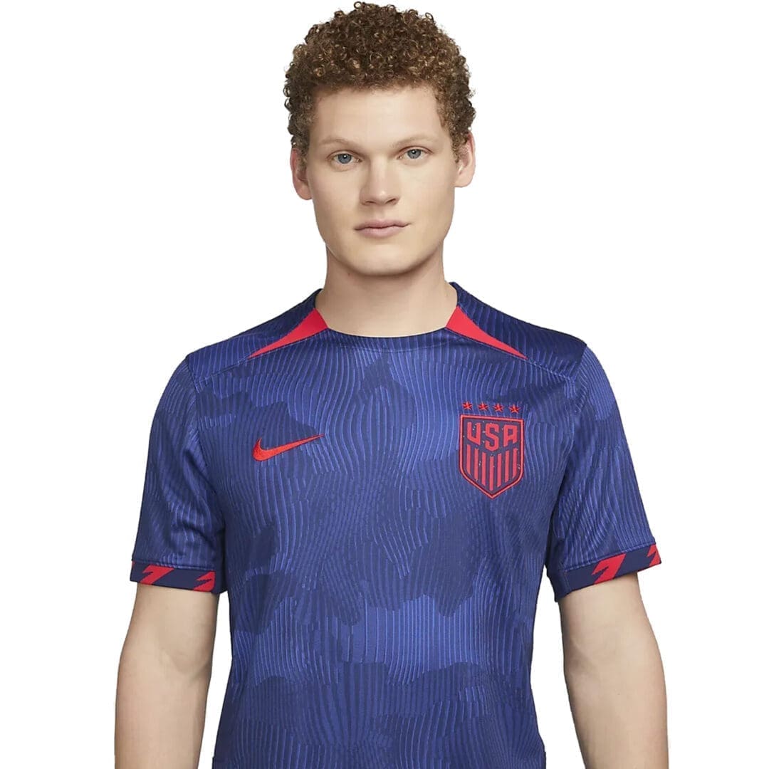 The USWNT with the 2023 Away jersey, adorned with iconic stars and stripes. Stars embellish the team crest, while hidden details on the inside pay homage to the team’s remarkable 4 world championships.