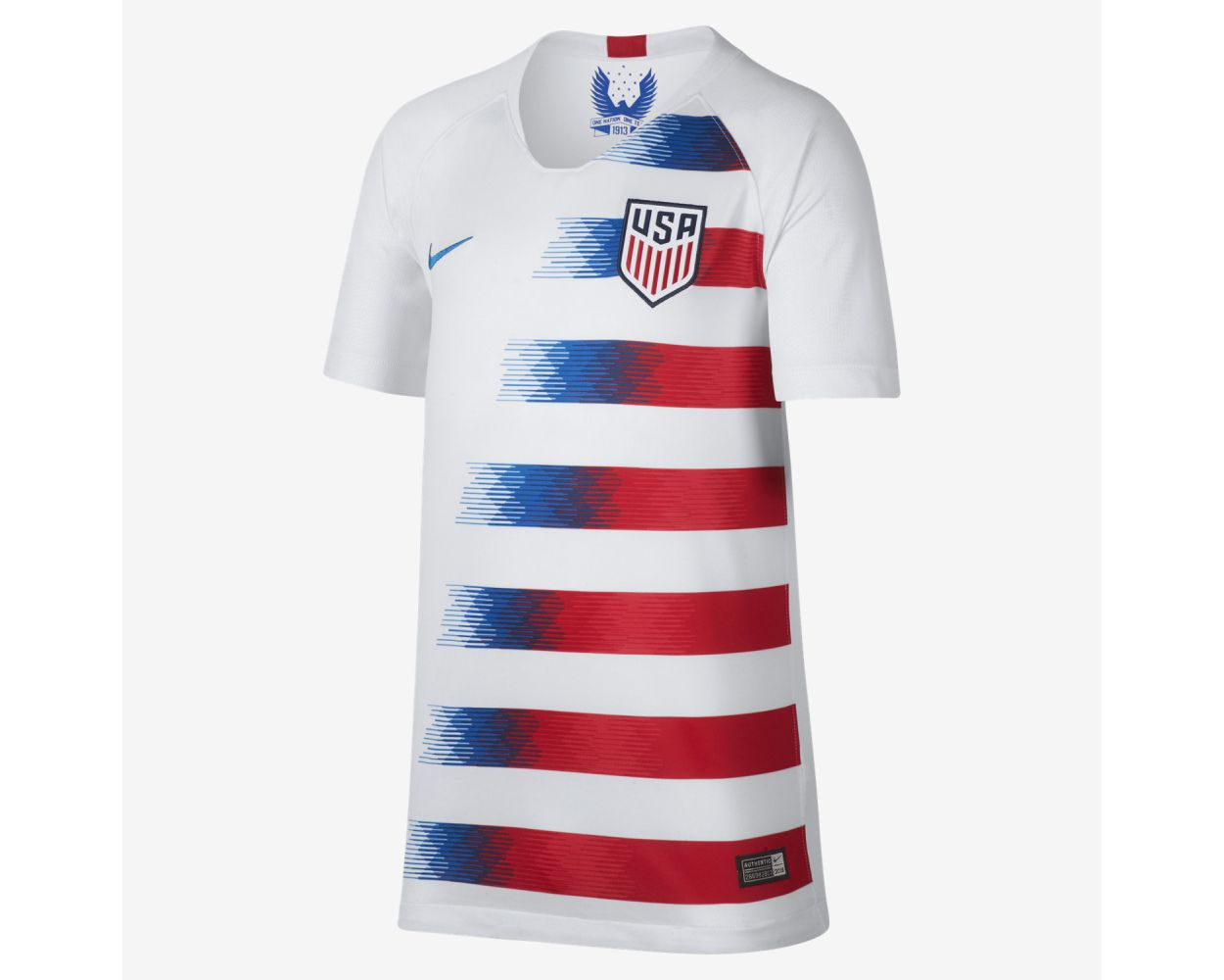 Let young supporters represent Team USA in style with the Nike USA Home Jersey Youth 2018. Built for both performance and pride, this jersey combines authentic team detailing with lightweight, breathable comfort.