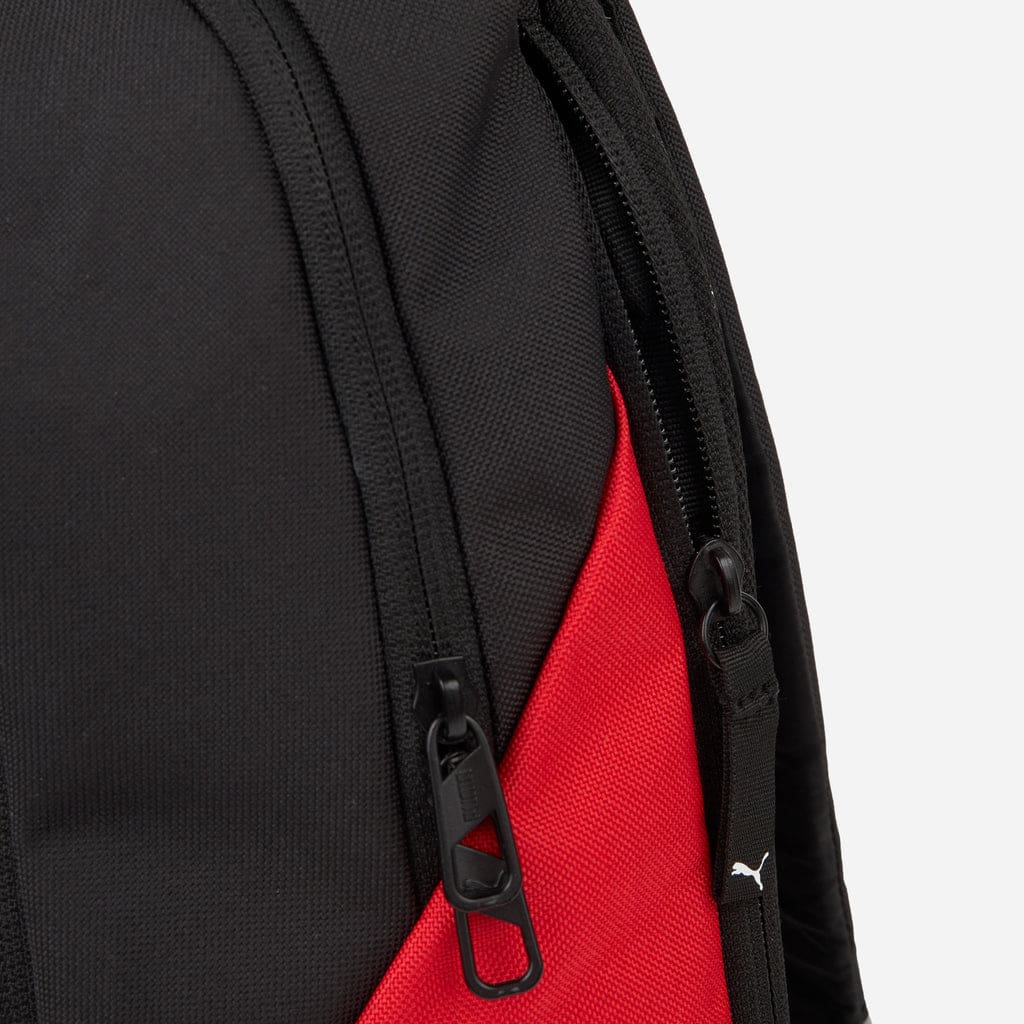 Carry your essentials in sleek style with this AC Milan-inspired backpack, blending bold design and everyday functionality. The red and black color scheme pays tribute to one of the most legendary football clubs, while the compact silhouette keeps things lightweight yet spacious. Designed with multiple compartments, it offers organized storage for books, gear, or travel items. The padded shoulder straps and back panel provide added comfort for all-day wear, whether you’re commuting or heading to the field. A front zip pocket gives you quick access to your smaller items, and the top haul handle adds convenience. The material is made to last, with a durable build that resists daily wear and tear. With its sporty design and versatile use, it’s a great addition to any fan’s everyday lineup.