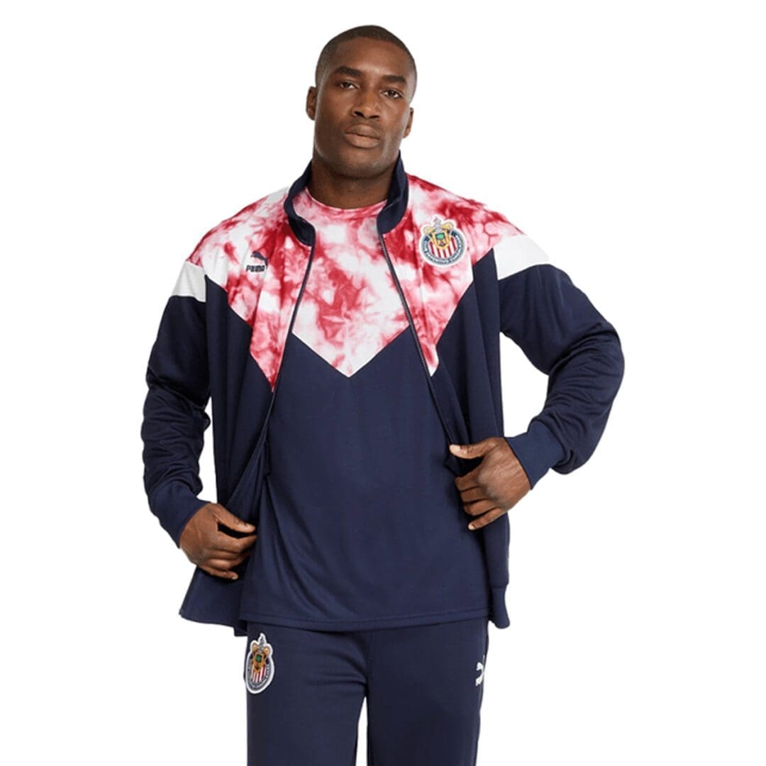 Made using recycled materials for an energetic spin on eco-friendly fashion, and featuring a sporty yet sophisticated silhouette, full-zip closure, color-contrasting chevron panels, dryCELL moisture-wicking technology and bold club branding, you’ll be supporting your squad with street-inspired style.