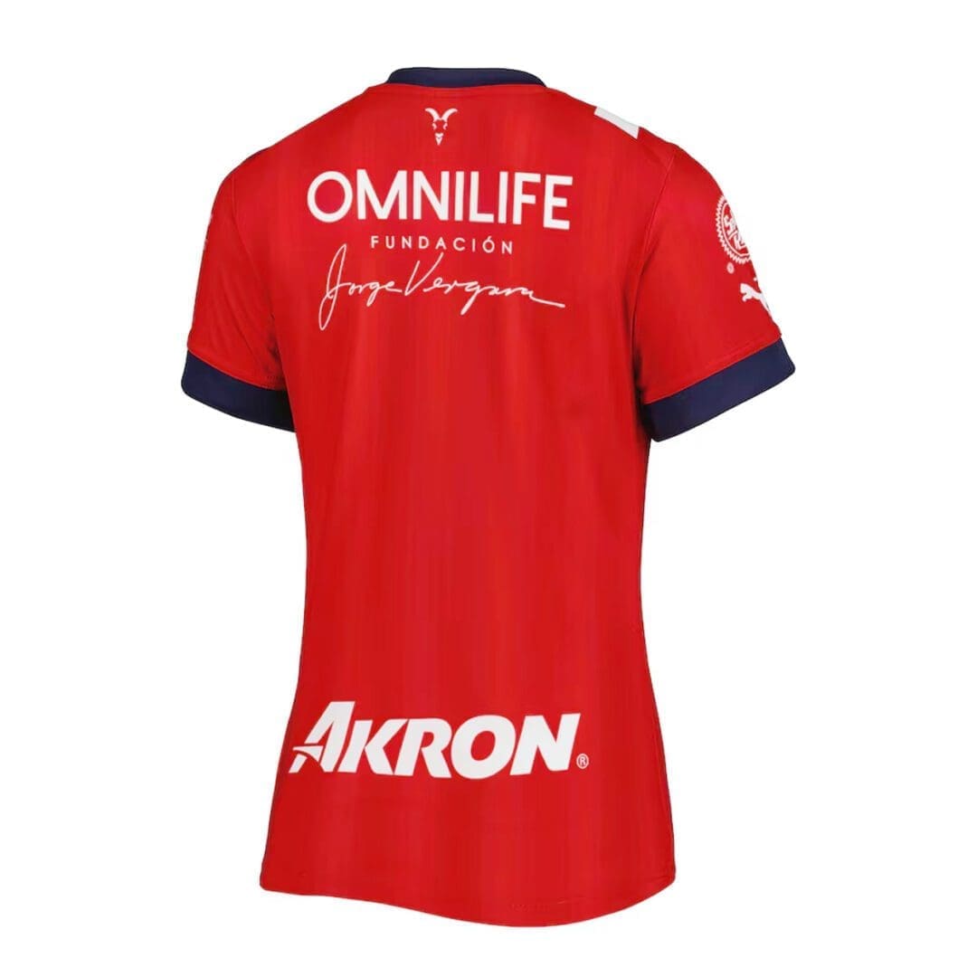 Both the club shield and the PUMA logo are located in the central part, just below the V-neck, in blue, which matches the ribs on the sleeves.