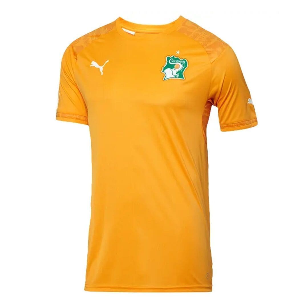 Crafted with precision, this jersey features the iconic orange hue synonymous with the Ivorian national team, symbolizing energy and passion.