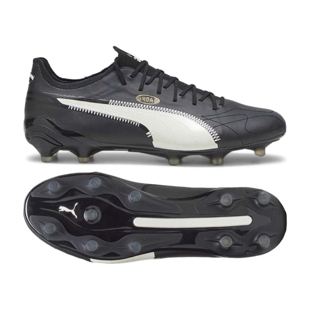 Inspired by the iconic PUMA KINGs of the past, these cleats feature a classic look that pays homage to the history of the game. Made with K-BETTER, a high-performance material, these cleats offer superior durability, flexibility, and support, allowing you to perform at your best on the field. The lightweight outsole enhances your agility and speed, while the use of 20% recycled materials demonstrates Puma’s commitment to sustainability. Upgrade your soccer gear with the Puma King Ultimate cleats and experience the perfect blend of style and performance.