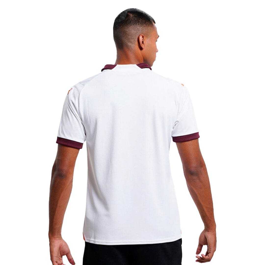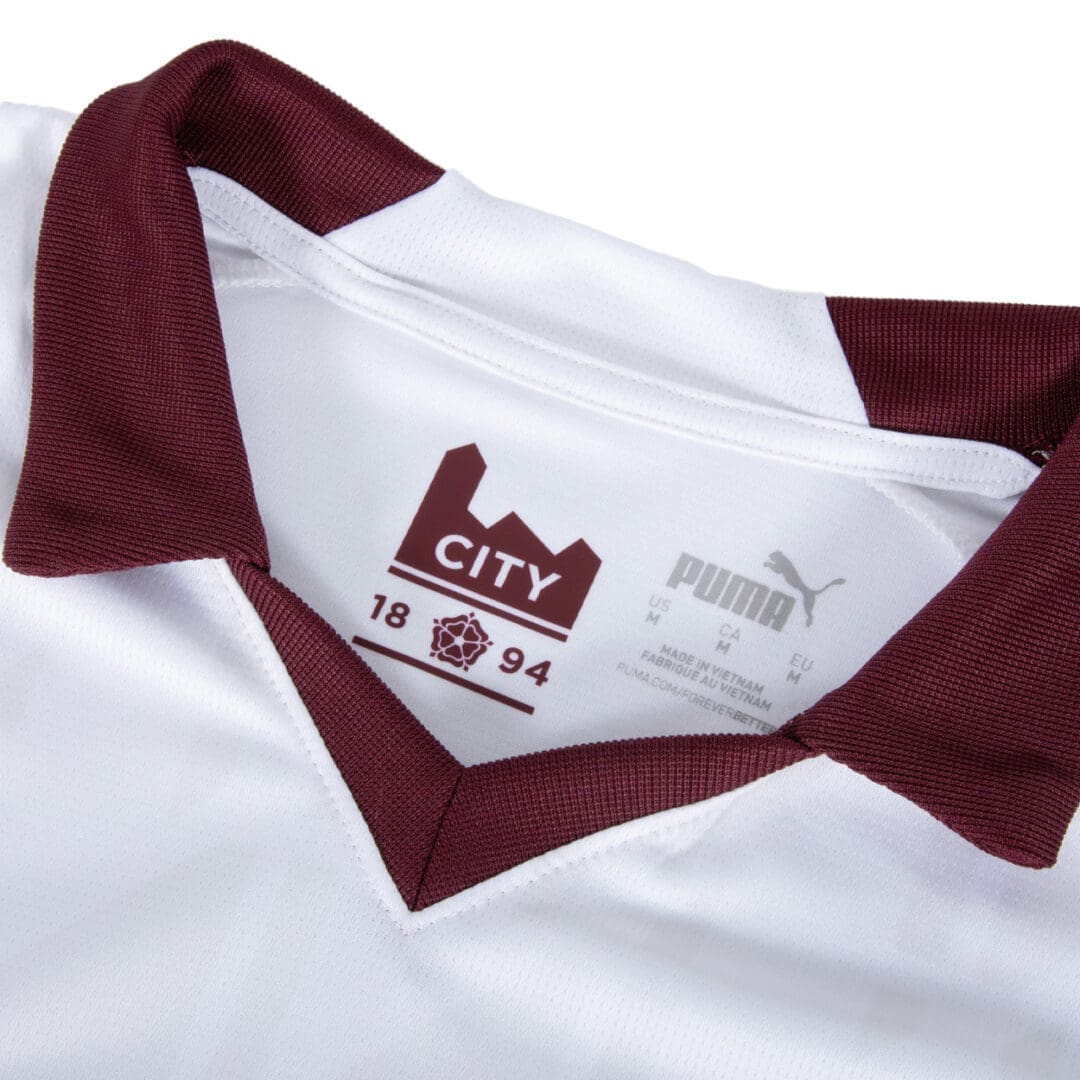 With an all-over print drawn from an archival weave pattern and colours that honour the city’s creative heritage, this jersey is made of 100% recycled polyester (excluding trims and decorations) – and 100% Manchester.