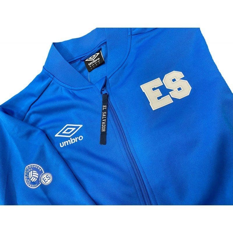 Umbro Official El Salvador 2021-22 T Jacket in royal blue. Full zip jacket with side pockets.ES logo is heat pressed and Umbro logo is embroidered