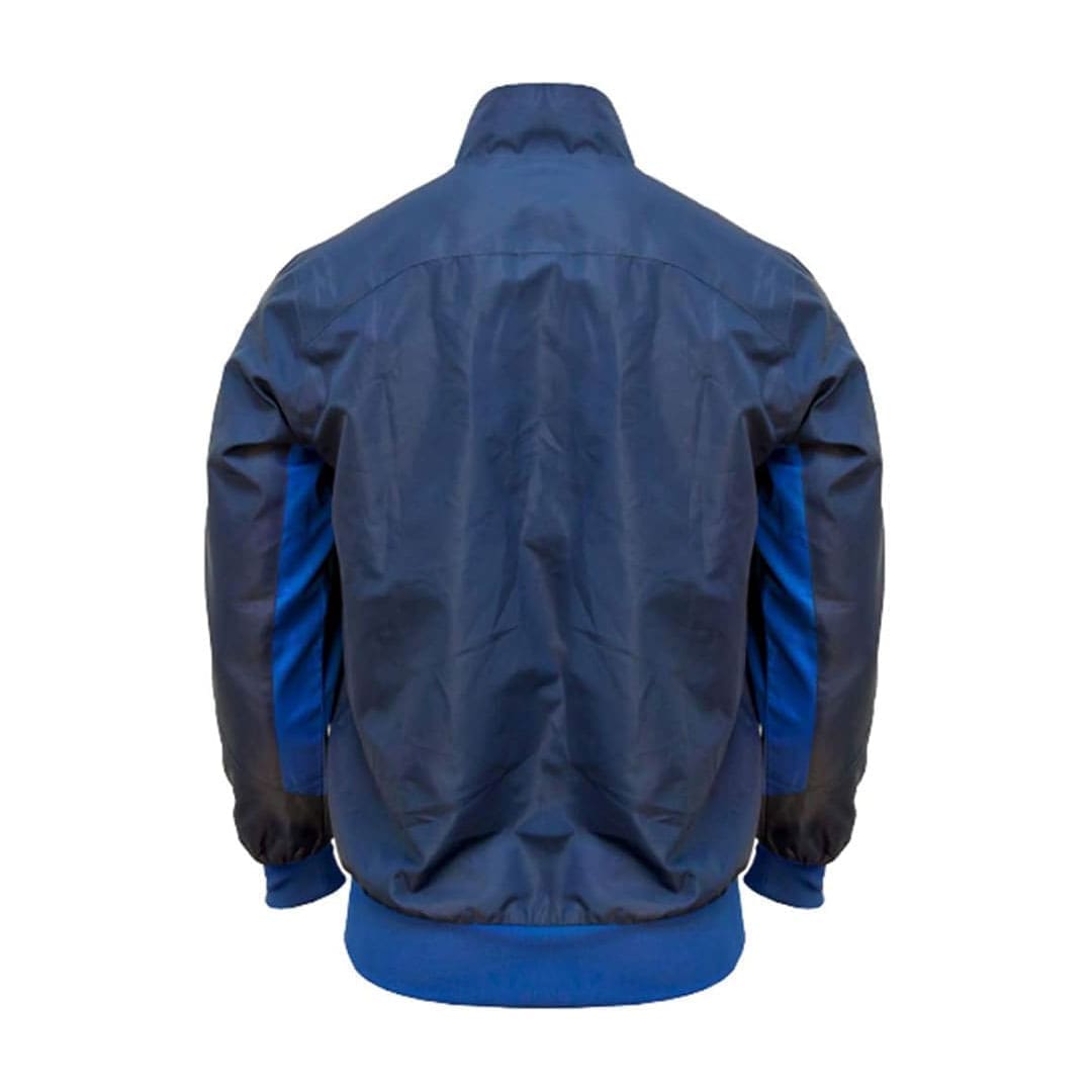 - Wind breaker style in two tone of dark blue and royal blue design Soccer Federation badge is heat pressed on the right sleeve.